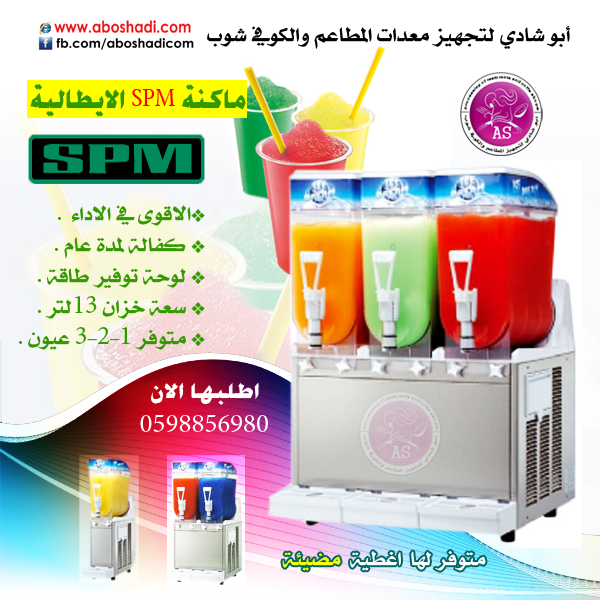 مع انطلاق الصيف .. استعد لجني الارباح باضافة ماكينة البراد ( الايس ) نوفر لكم / ماكينات البراد ( الايس ) الايطالي والامريكي الأقوى على الاطلاق بأسعار مناسبة والأكثر من ذلك .. نوفر لكم المواد اللازمة لاعداد البراد والايس بمذاقات مميزة لا تتردد بالاستفسار والاتصال بنا الان على رقم : 0598856980 او زيارة مقرنا في قلقيلية - باقة الحطب ..